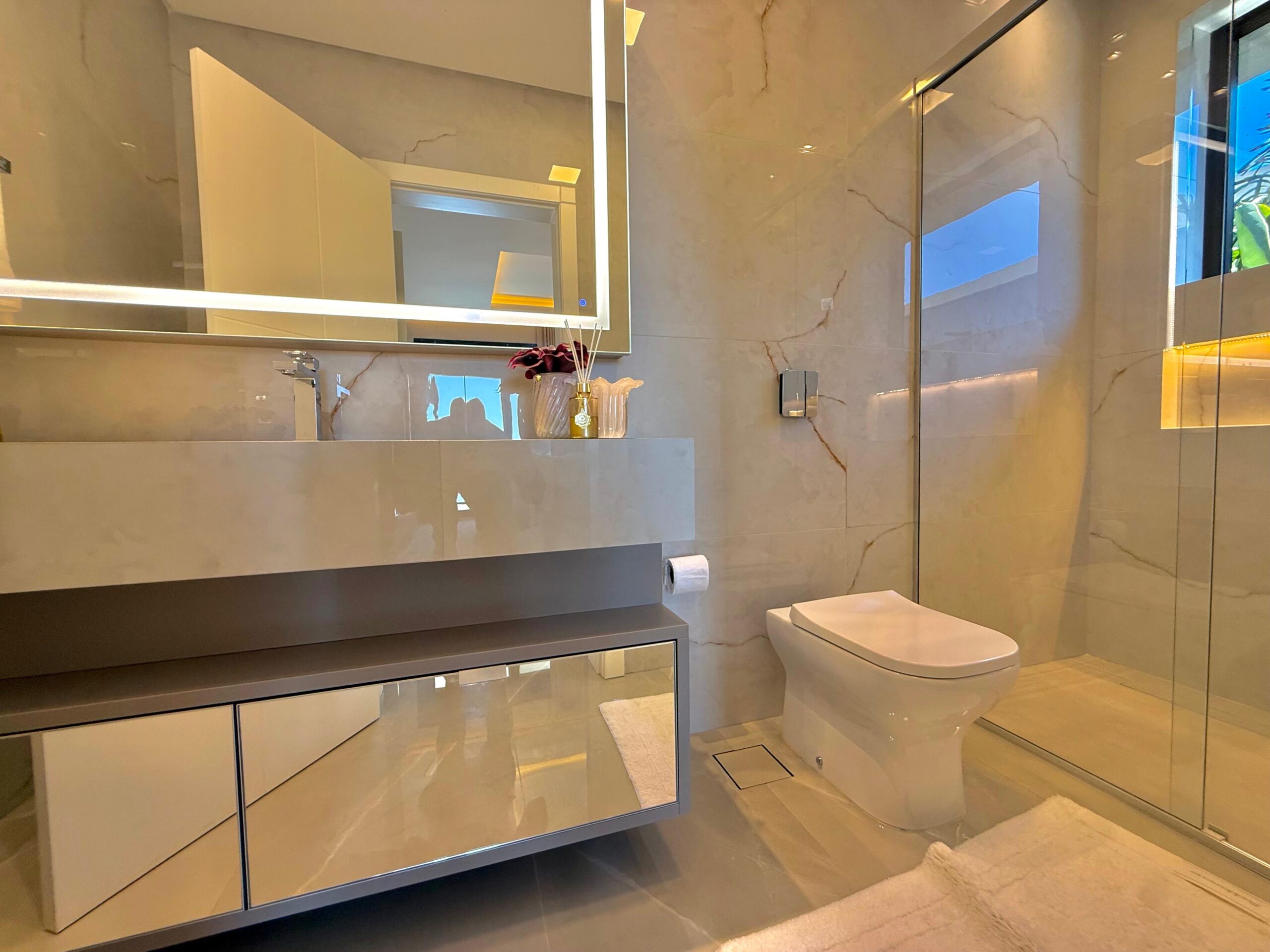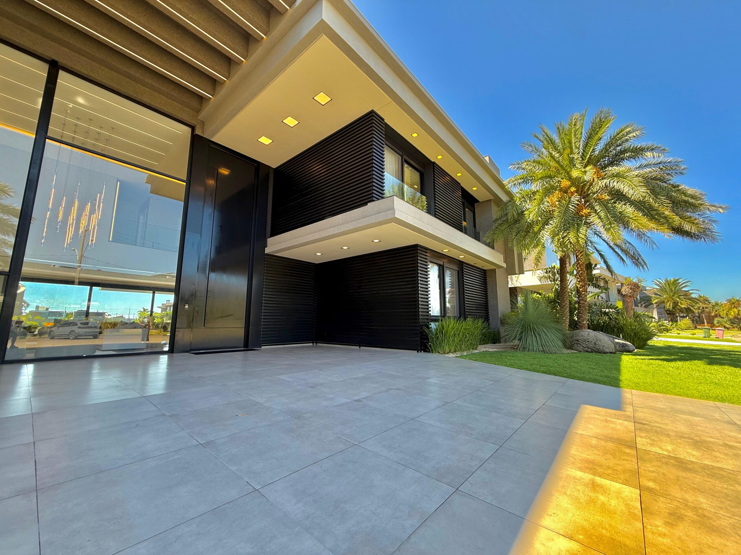 O projeto contemporâneo se destaca pela fachada imponente, com 90% revestida em pó de mármore italiano, refletindo elegância e durabilidade. A casa conta com espaço de estacionamento aberto para até 3 veículos e oferece total comodidade com elevador e automação residencial completa.