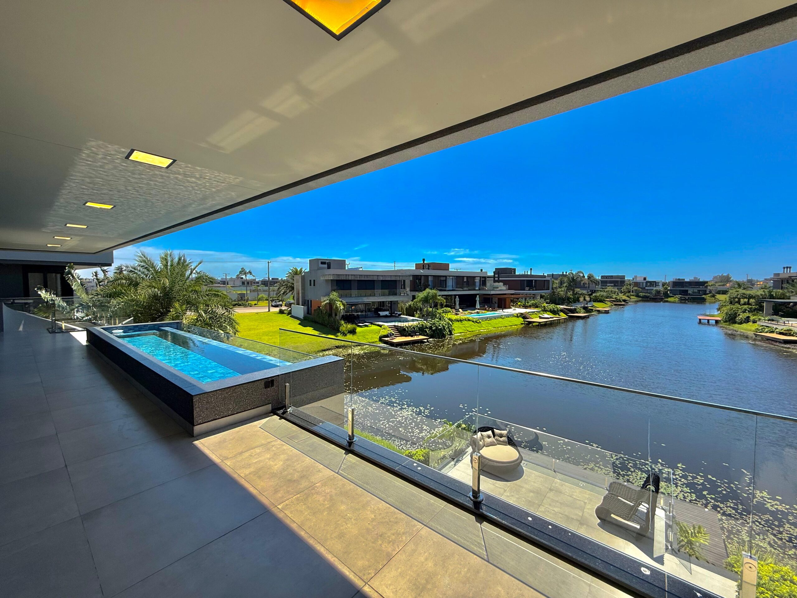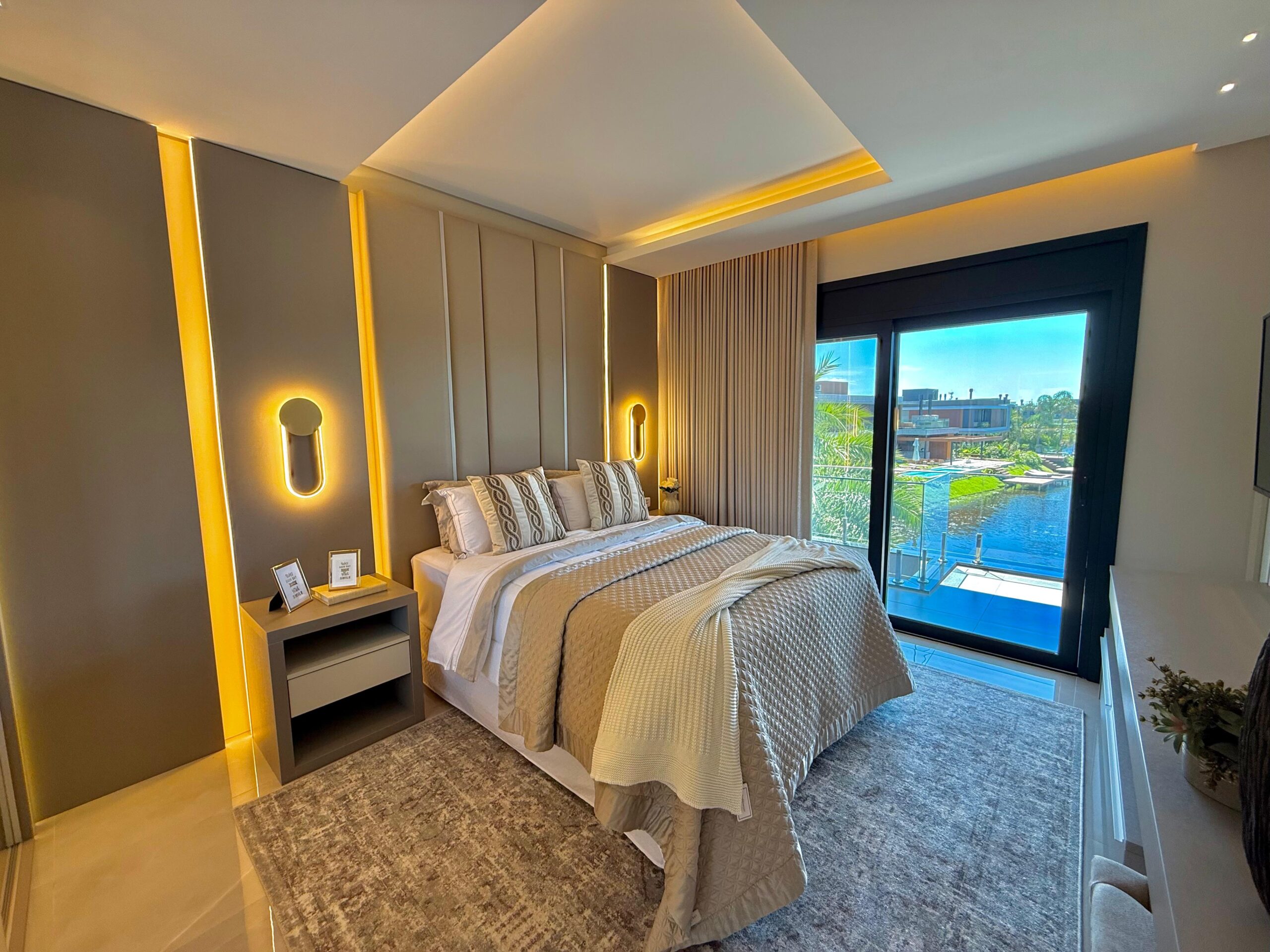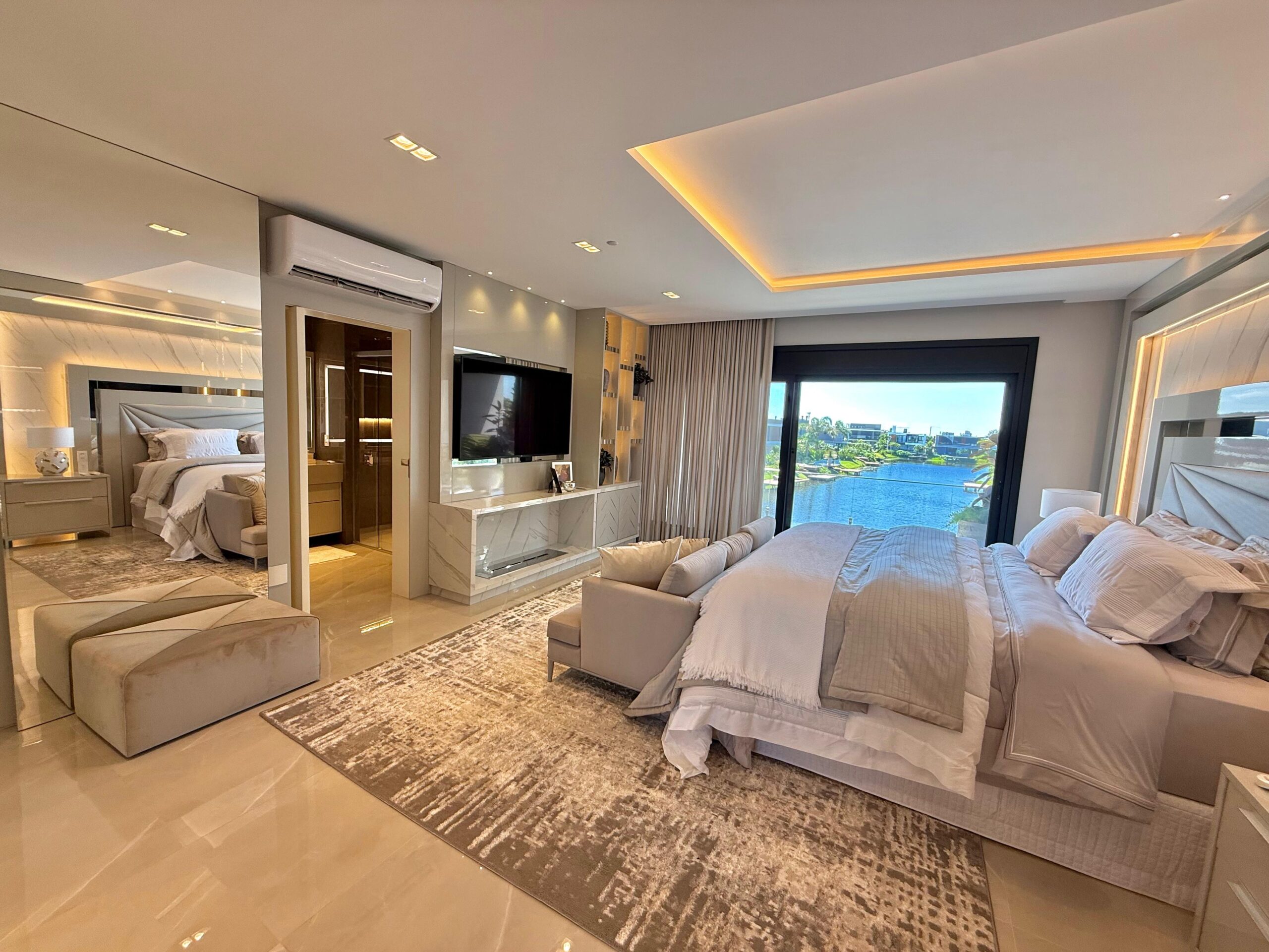 Nos ambientes íntimos, o conforto térmico é garantido pelo piso aquecido, além de persianas e cortinas elétricas que reforçam a praticidade e o requinte. A área externa é um verdadeiro refúgio particular, com pergolado, deck externo suspenso, trapiche e uma espetacular piscina suspensa na sacada, com borda infinita, proporcionando uma vista única e momentos inesquecíveis.