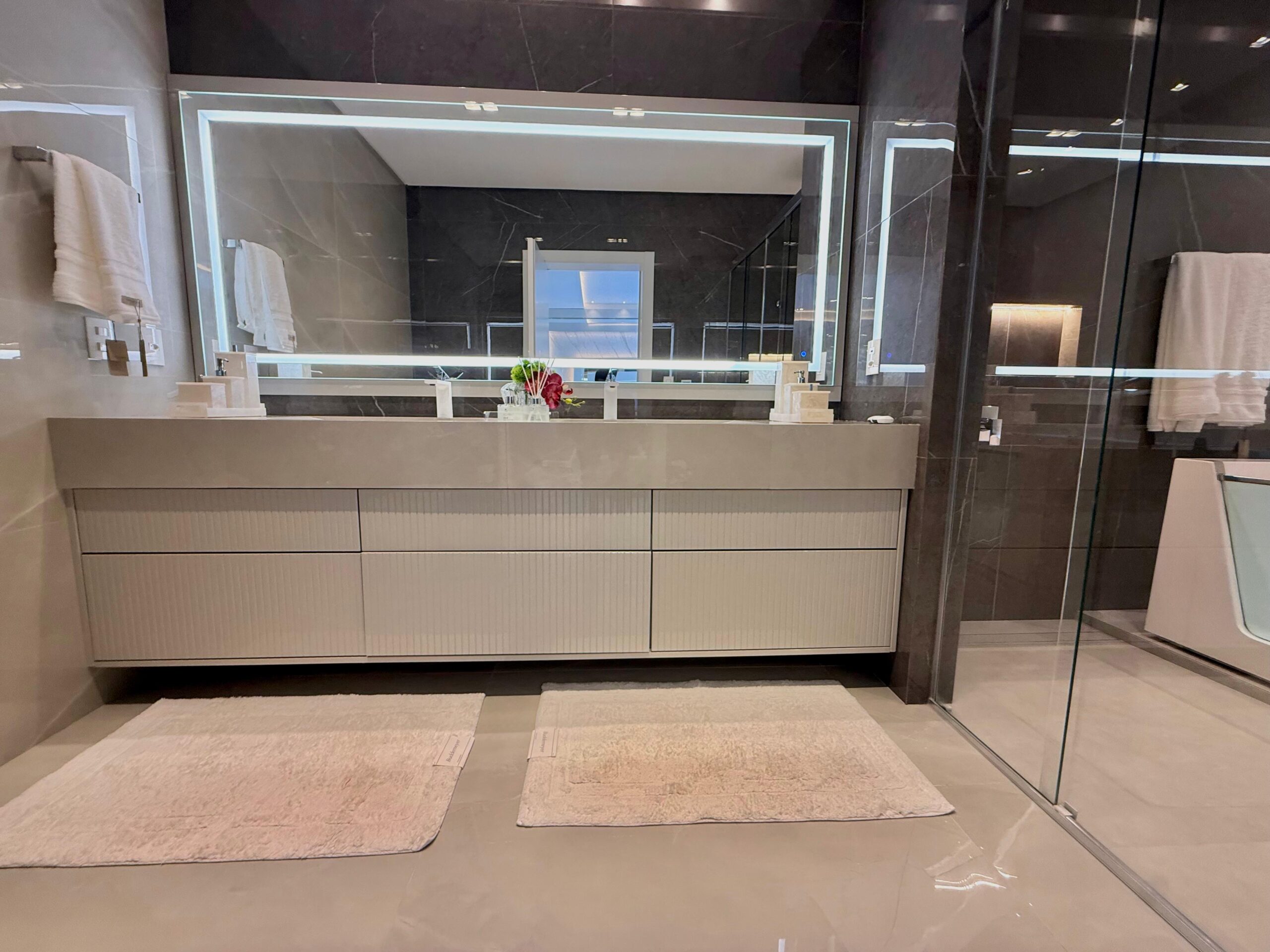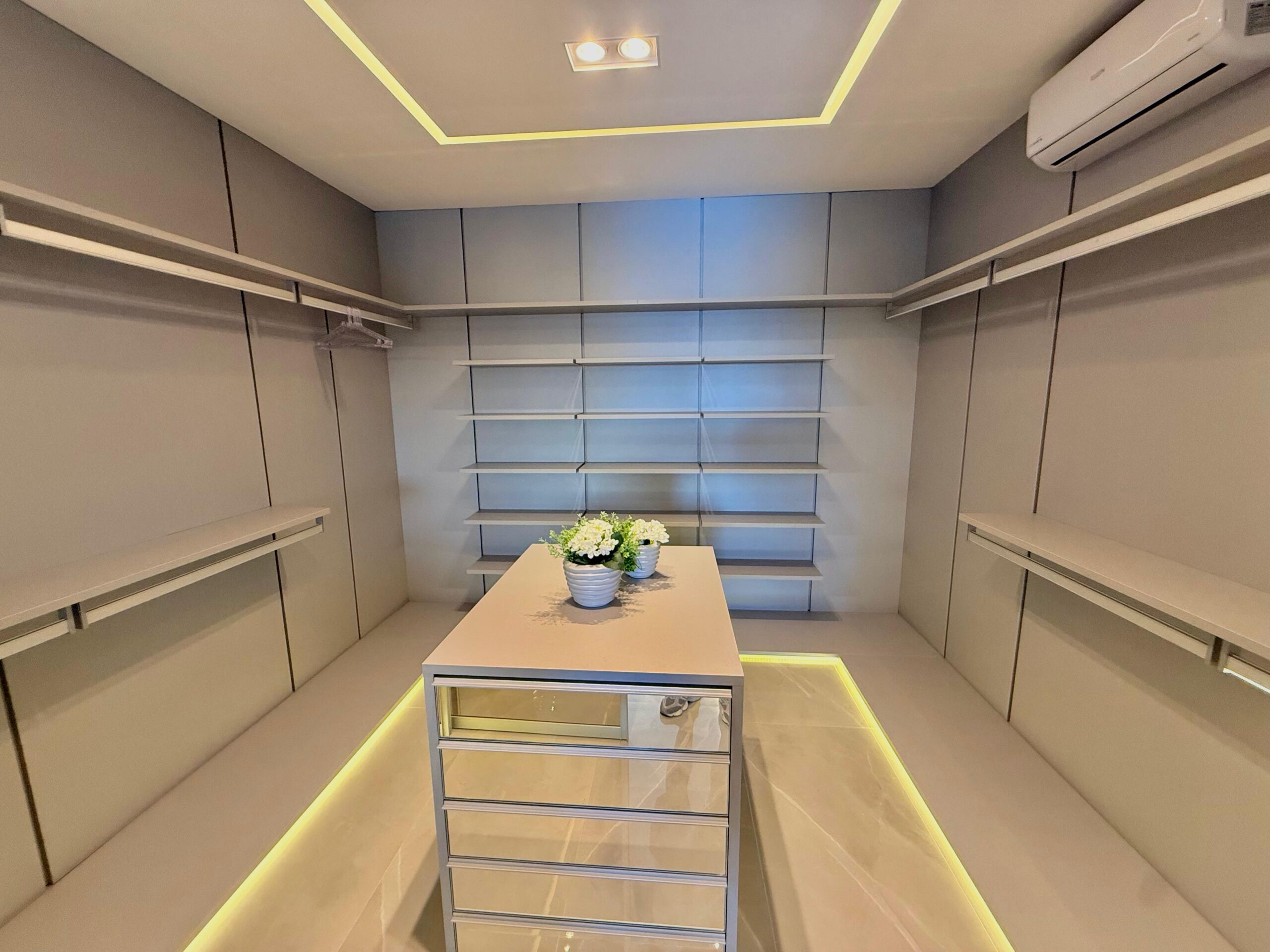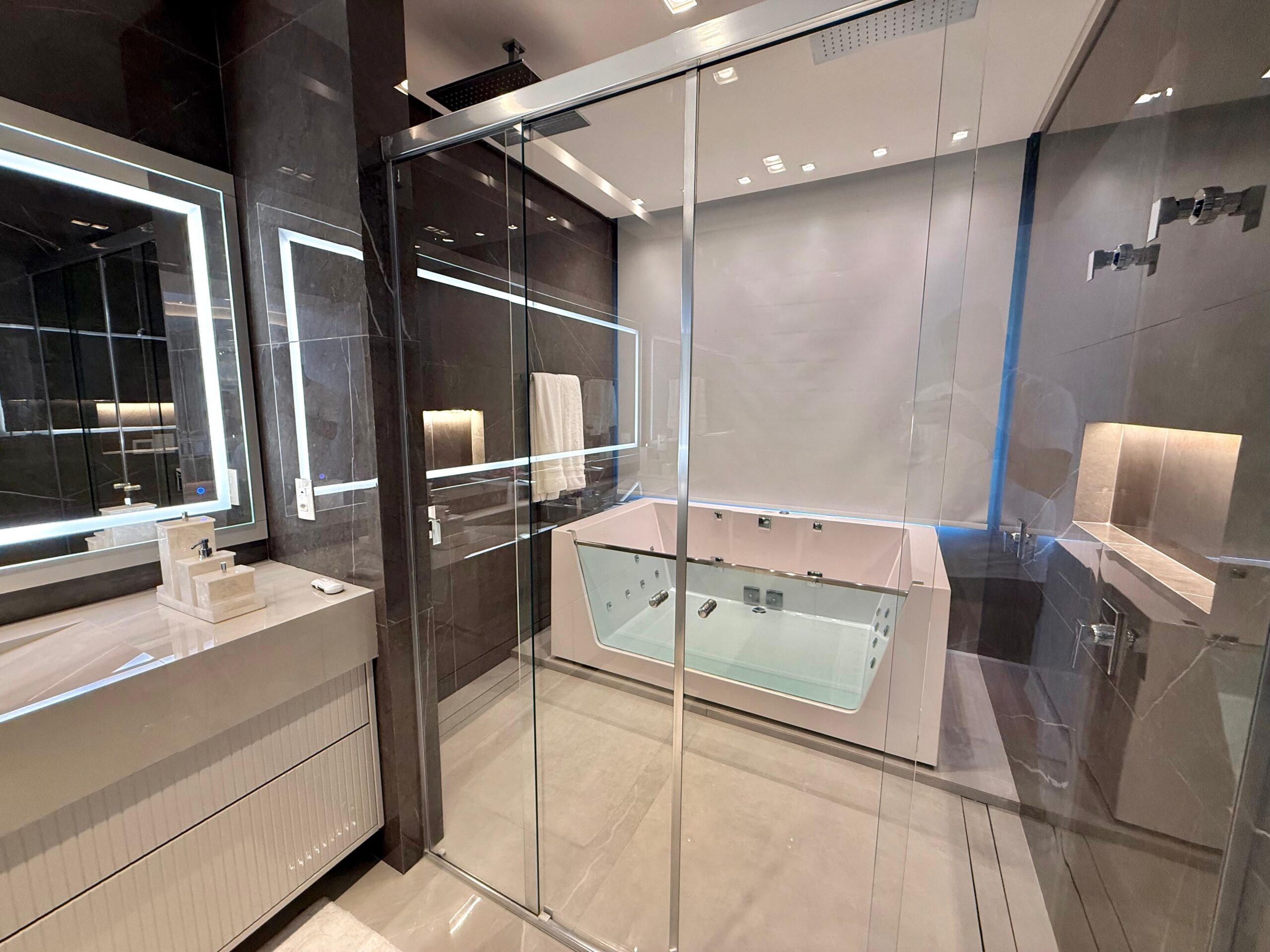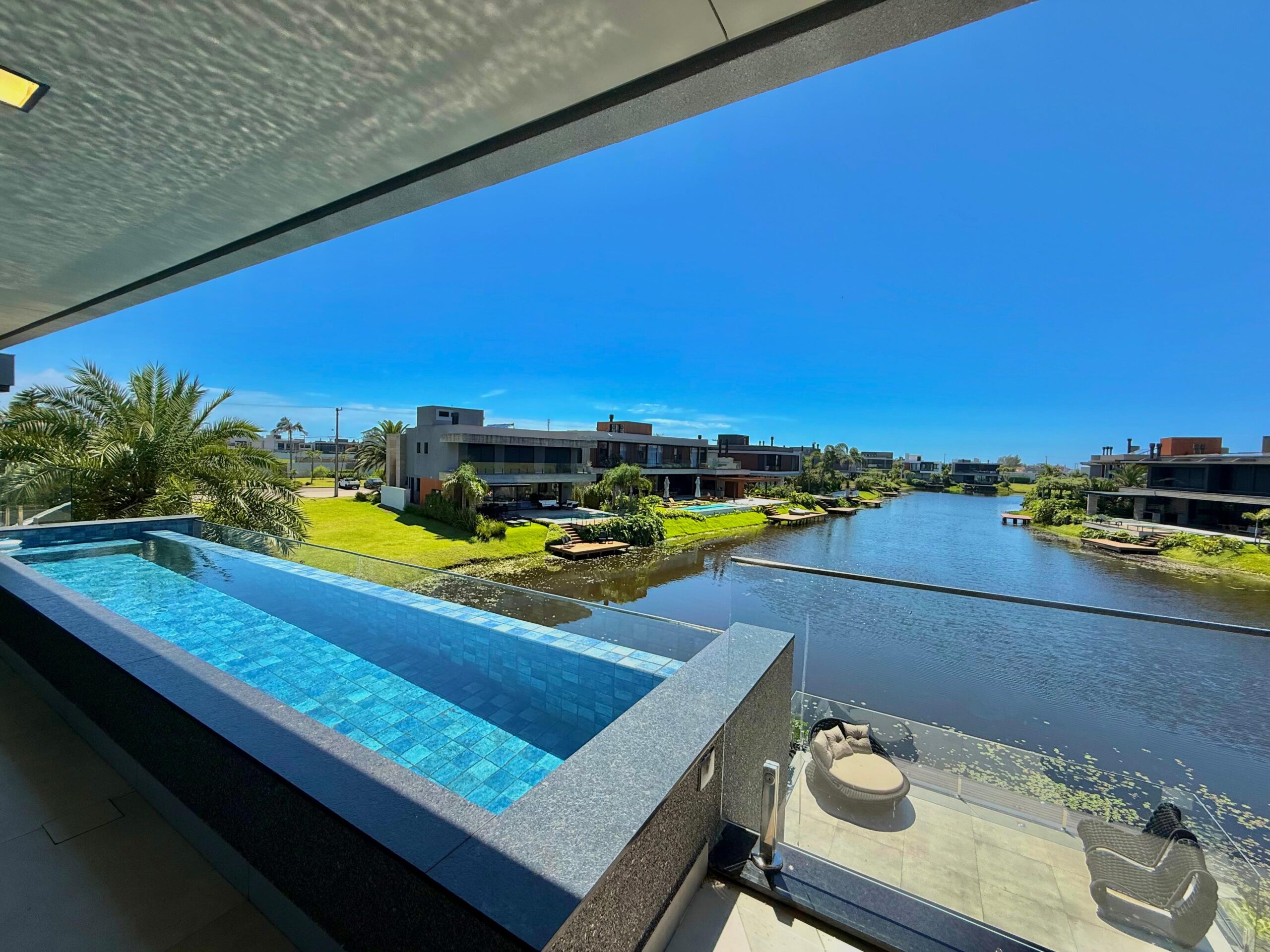 Nos ambientes íntimos, o conforto térmico é garantido pelo piso aquecido, além de persianas e cortinas elétricas que reforçam a praticidade e o requinte. A área externa é um verdadeiro refúgio particular, com pergolado, deck externo suspenso, trapiche e uma espetacular piscina suspensa na sacada, com borda infinita, proporcionando uma vista única e momentos inesquecíveis.